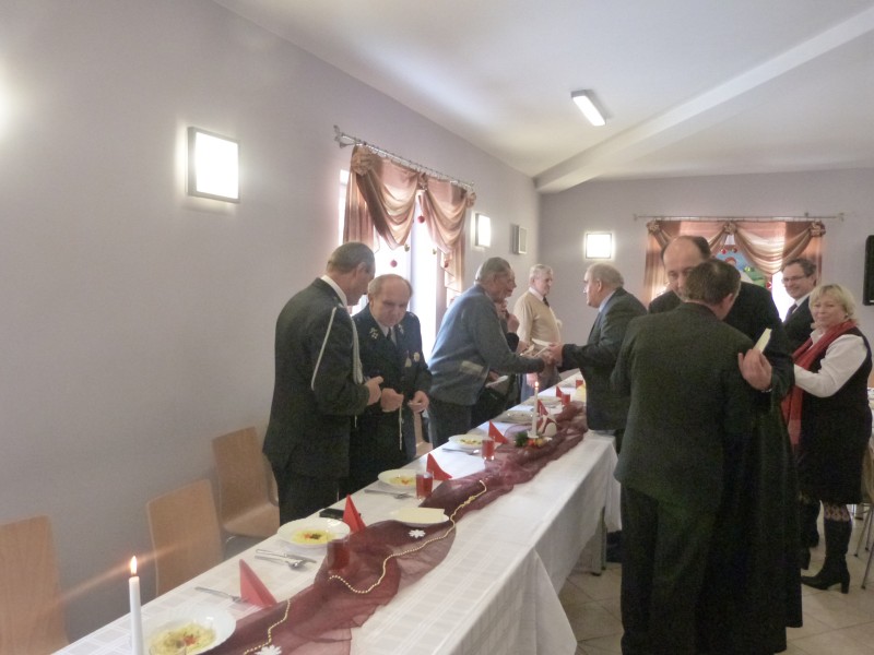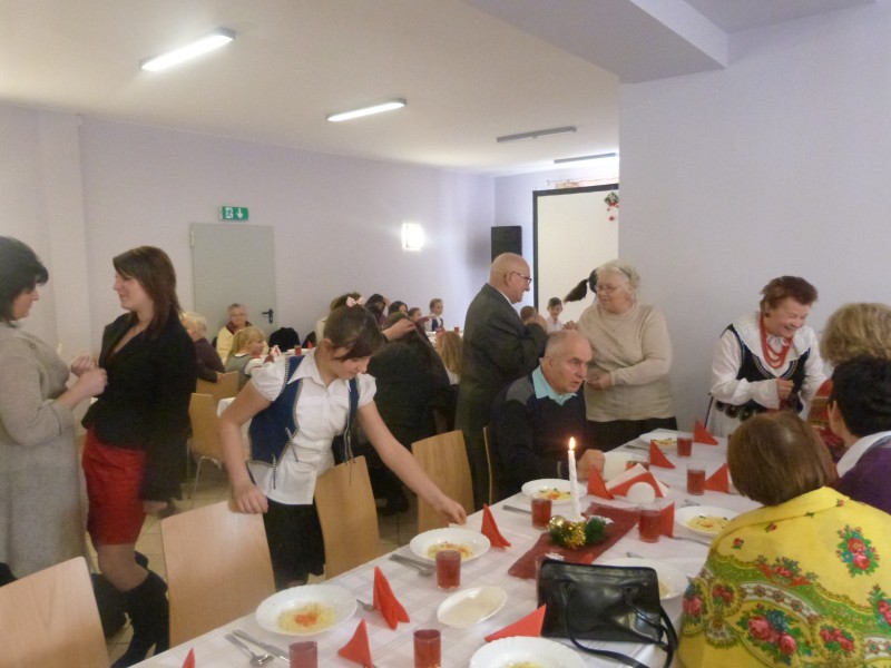 Panie z Koła Gospodyń Wiejskich „Habdasówka” z Przybędzy przygotowały wspaniały obiad oraz słodki poczęstunek dla wszystkich gości. Niespodzianką na spotkaniu opłatkowym był występ grupy kolędniczej, która w humorystyczny sposób, ze śpiewem na ustach powinszowała Wójtowi, Radnym Gminy, Pani Sołtys, Paniom z KGW, Strażakom oraz wszystkim przybyłym gościom.
