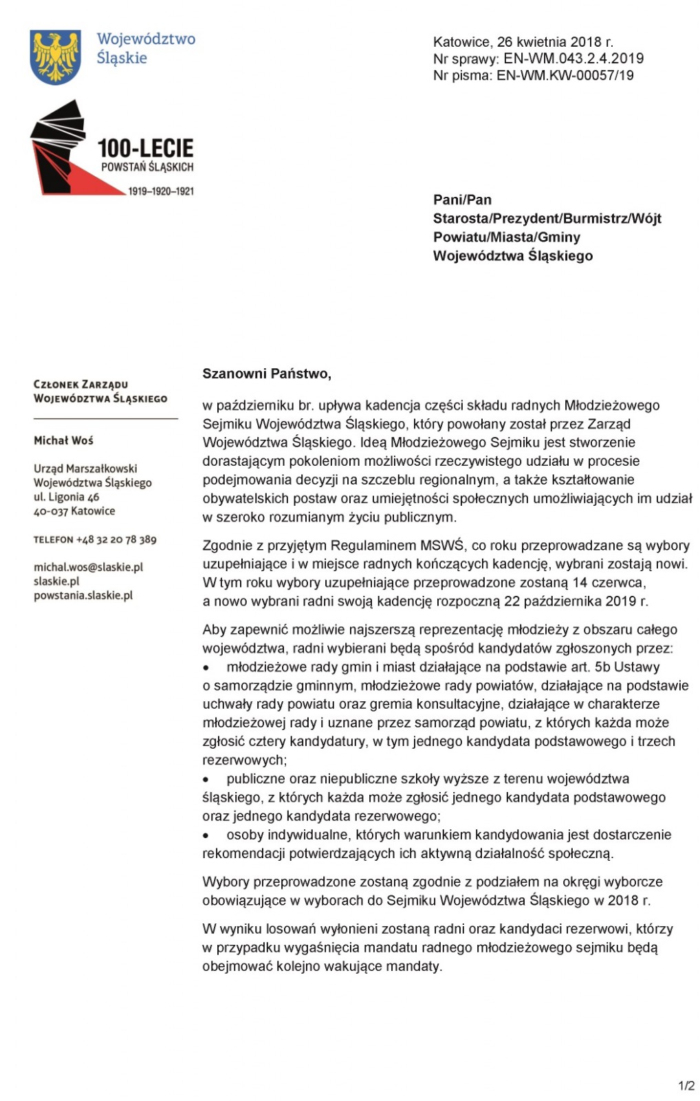 Wybory do Młodzieżowego Sejmiku Województwa Śląskiego Dodano: 29.04.2019 r. Kategoria: Informacje ogólne