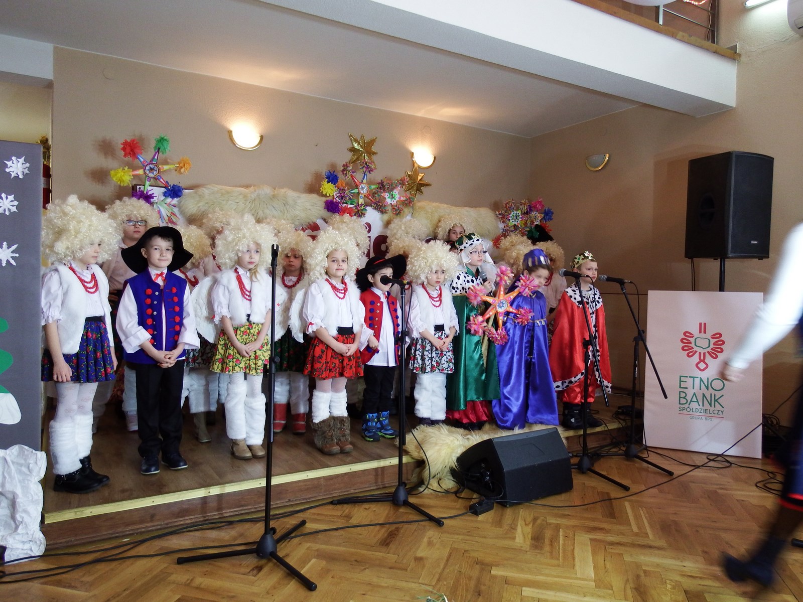 Grupa Kolędnicza z Przedszkola ZSP w Bystrej: Weronika Pieczarka, Maciej Murański, Olivier Janota, Patryk Polak. Aleksandra Kupczak – Życzenia Świąteczne (Alicja Jasek)
