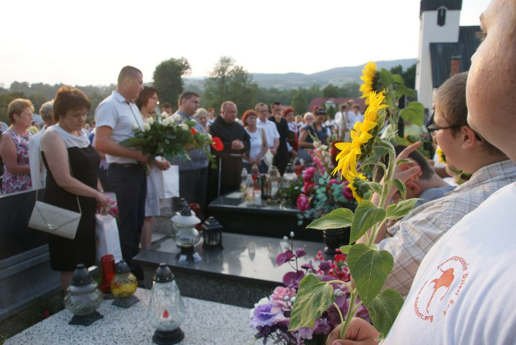 Po mszy pojechali do Łękawicy, by tam włączyć się do uroczystości parafialnych, a na zakończenie złożyć wiązanki kwiatów polnych i słoneczniki na grobie Patrona. Dlaczego kwiaty polne? To nawiązanie do piosenki ,,Polskie kwiaty” jaką zaśpiewali mu parafianie gdy wyjeżdżał na misje – powiedział wówczas, że jak wróci to znów mu ją zaśpiewają.