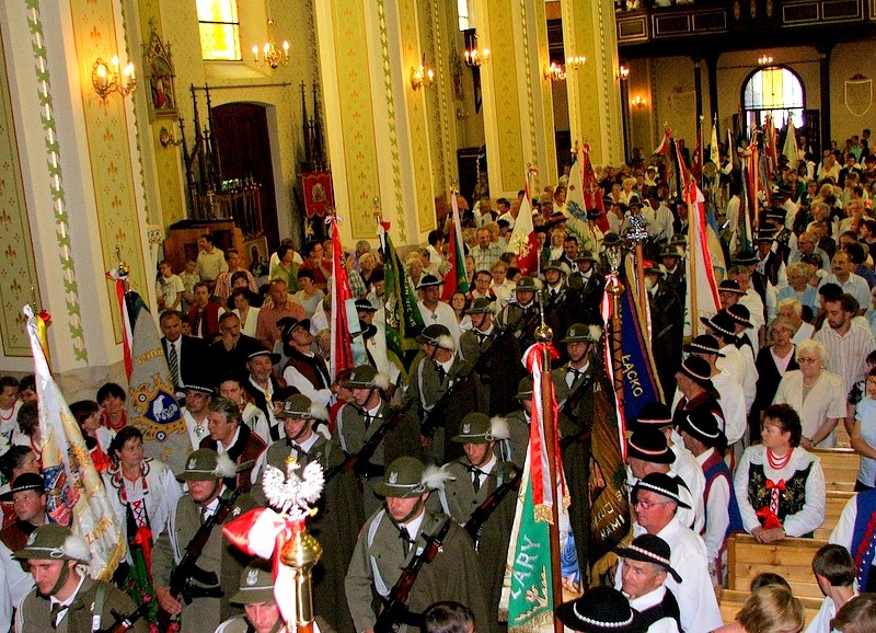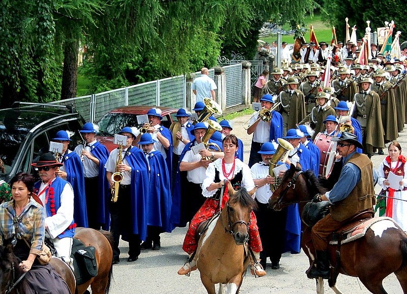 Kolejnym punktem programy była góralska defilada. Przed licznie zgromadzonymi na schodach Sanktuarium gośćmi prezentowała się Banderia konna, Orkiestra dęta przy OSP w Radziechowach pod batutą Dariusza Jurasza, Kompania Honorowa Strzelców Podhalańskich, kilkadziesiąt pocztów sztandarowych Oddziałów Związku Podhalan, OSP i innych organizacji społecznych, Asysta Żywiecka w strojach mieszczan żywieckich, Zespoły Regionalne z Żywiecczyzny, Beskidu Śląskiego, Podhala i polonijne z Kanady.