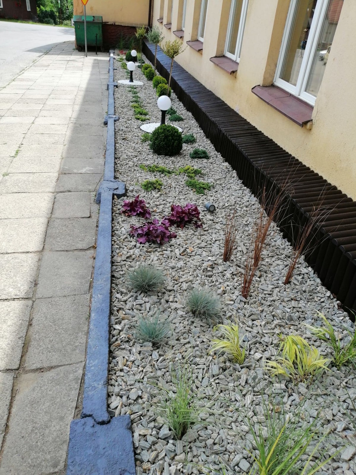 W ramach zadania zamierzamy posadzono rośliny wieloletnie, zabezpieczono podłoże, wykonano oświetlenie.