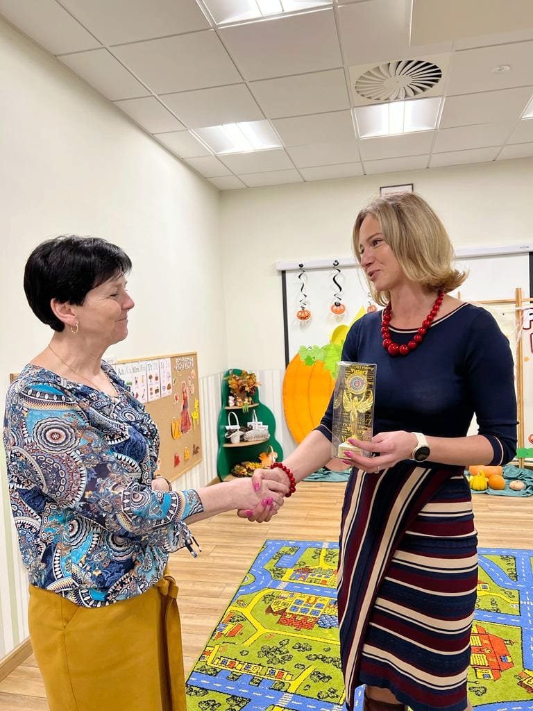 Na zakończenie bardzo udanego dnia dwujęzycznej integracji Pani Aneta Zwolińska przekazała na ręce Pani Dyrektor Danuty Adamczyk wyróżnienie dla Przedszkola Małego Księcia w Wieprzu - Statuetkę za pracę na rzecz rozwoju dwujęzyczności. Podziękowanie otrzymała również Pani Alicja Puzoń Dyrektor ZSP w Czechowicach – Dziedzicach nr 2, za propagowanie Programu Dwujęzyczny Przedszkolak w mediach społecznościowych oraz aktywną jego realizację, nagrodzeni zostali także nauczyciele, między innymi Pani Monika Więcek pracująca w naszym przedszkolu.