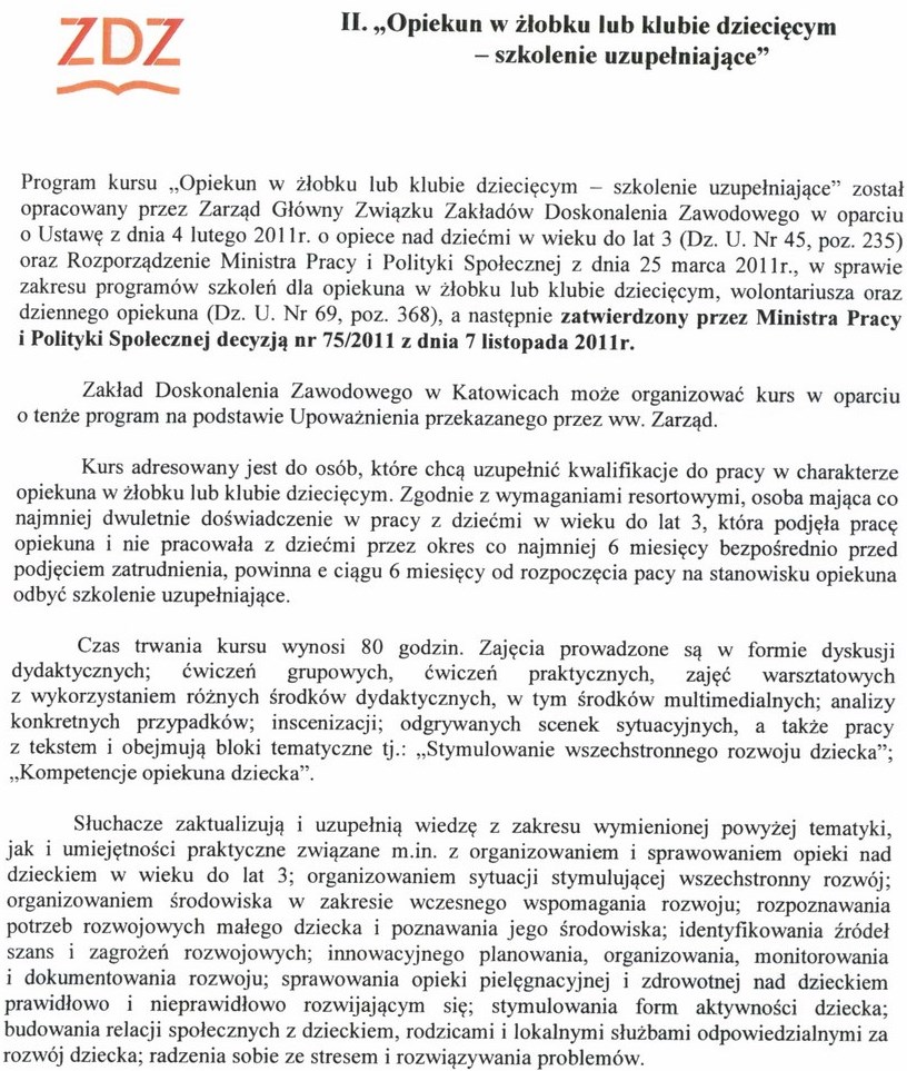 - „Opiekun w żłobku lub klubie dziecięcym - szkolenie uzupełniające",