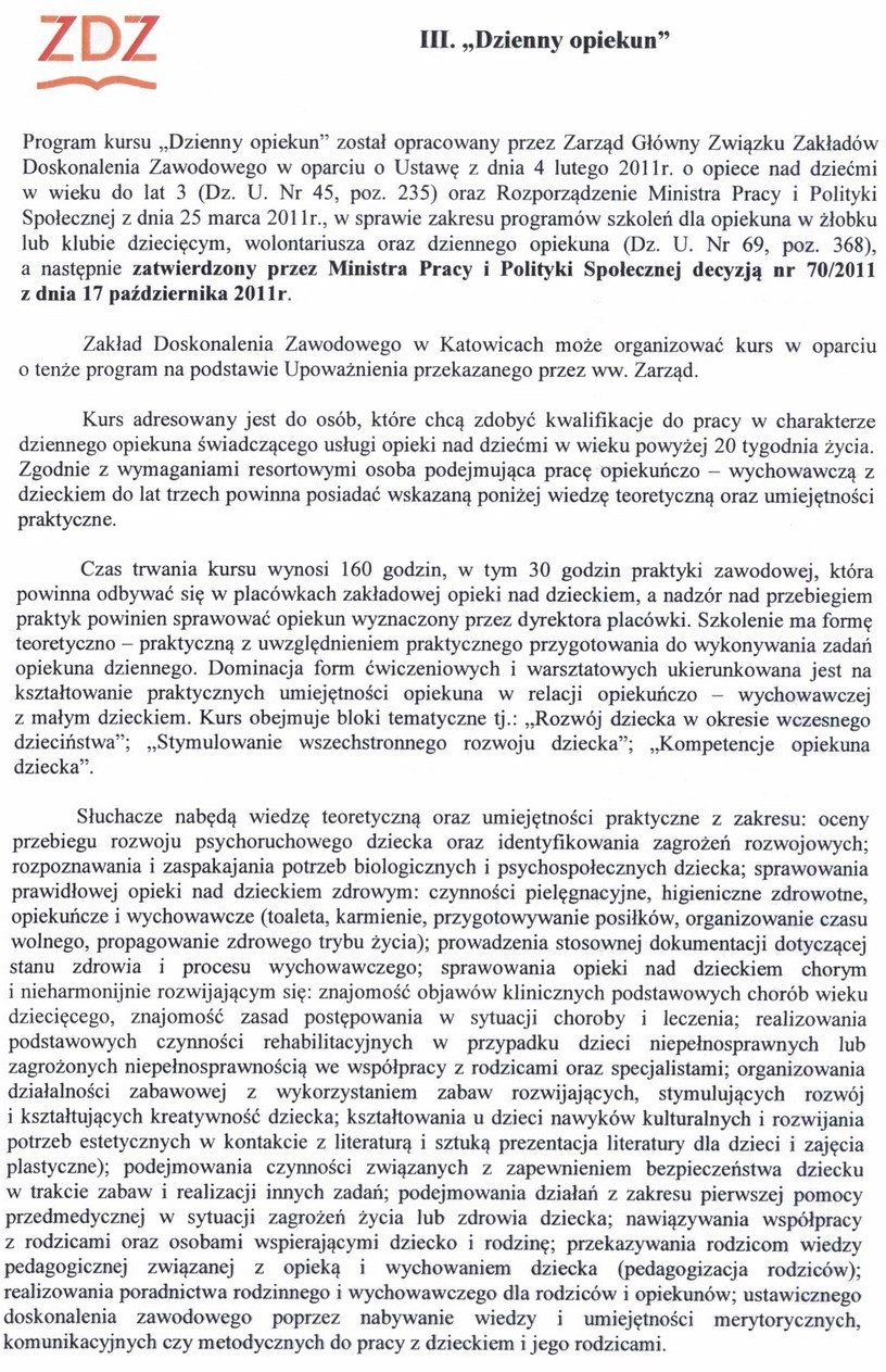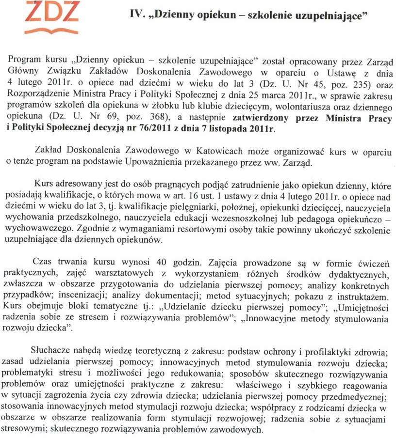 - „Dzienny opiekun - szkolenie uzupełniające",