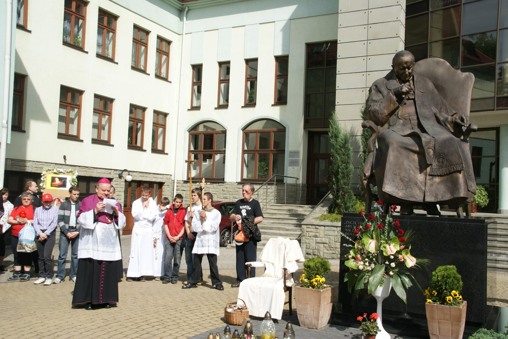 Godz. 9:00 modlitwa pod Pomnikiem Św. Jana Pawła II przy Kurii Diecezji Bielsko-Żywieckiej oraz modlitwa za śp. ks. prałata Krzysztofa Ryszkę, proboszcza bielskiej parafii NSPJ. gorliwego kapłana, który służył wszystkim tym, do których został posłany i który zawsze spotykał się z nami przy pomniku Św. JP II