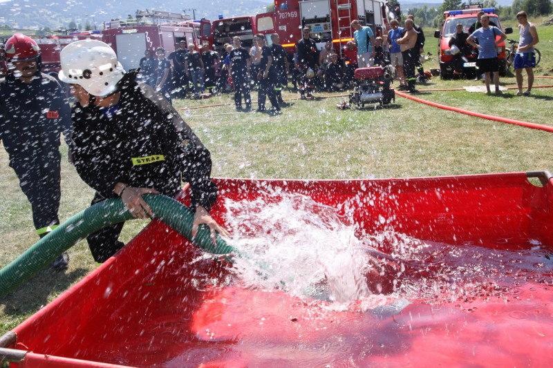 Po oficjalnym rozpoczęciu zawodów przystąpiono do losowania kolejności w jakiej będą startowały poszczególne drużyny. Jak zawsze najwięcej emocji wzbudziła konkurencja ćwiczenie bojowe, w której strażacy muszą w jak najszybszym czasie rozwinąć linie gaśnicze, uruchomić motopompę i przewrócić pachołki wodą podaną z bardzo dużym ciśnieniem. Konkurencja ta jest bardzo ciekawa z uwagi na nieprzewidywalny przebieg (możliwość awarii sprzętu, źle złożone węże).