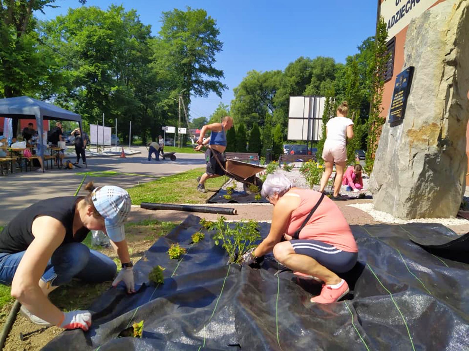 Część z planowanych działań już za nami. Dzięki dofinansowaniu w dniach 7-8 lipca odbyły się plenerowe warsztaty sadzenia roślin przed budynkiem Urzędu Gminy. W zajęciach wzięło udział ponad 40 uczestników.