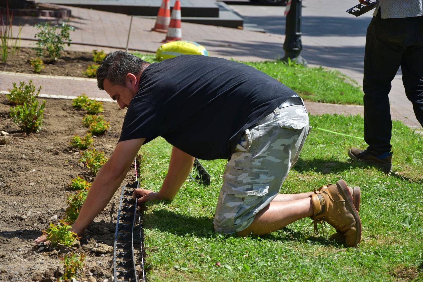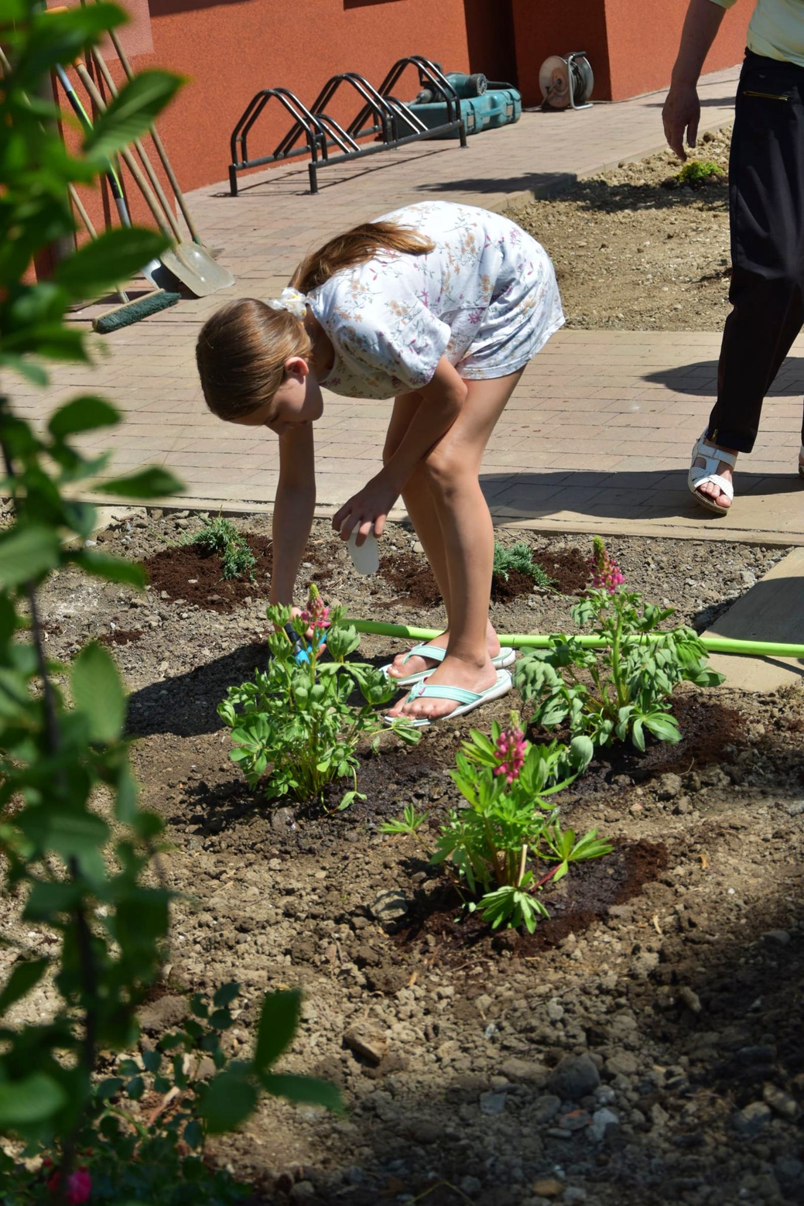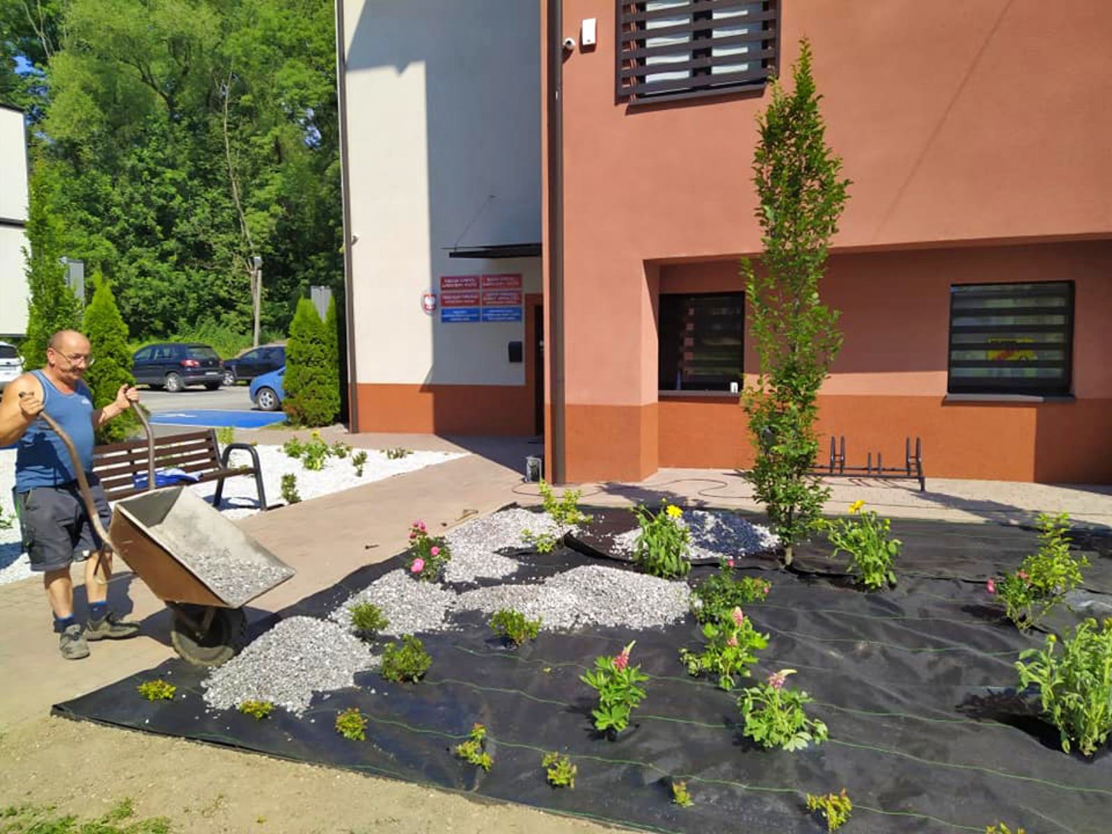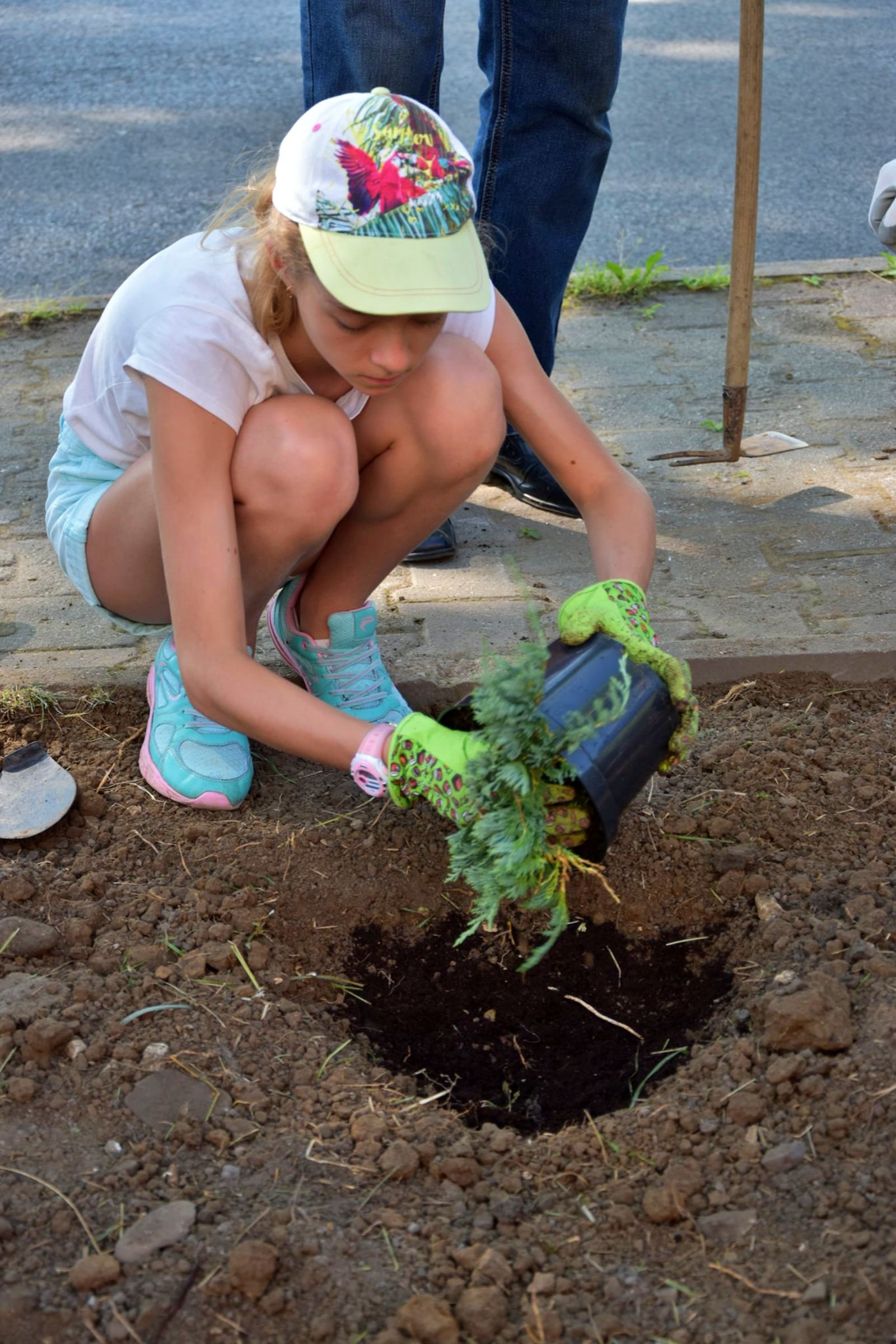 Co zrobiliśmy? W trakcie przygotowań do sadzenia została ściągnięta cała darń na wyznaczonym na działania warsztatowe terenie, została także nawieziona nowa warstwa ziemi, a także usunięto wiele kamieni i betonowych elementów, które uniemożliwiłyby sadzenie roślin. W ramach warsztatów posadzono blisko 300 roślin w tym 6 pięknych grabów. Rozpoczęto już także renowację trawnika, który nieco ucierpiał podczas przygotowań terenu. Rabaty zostały przykryte agrowłókniną oraz wykończone grysem.