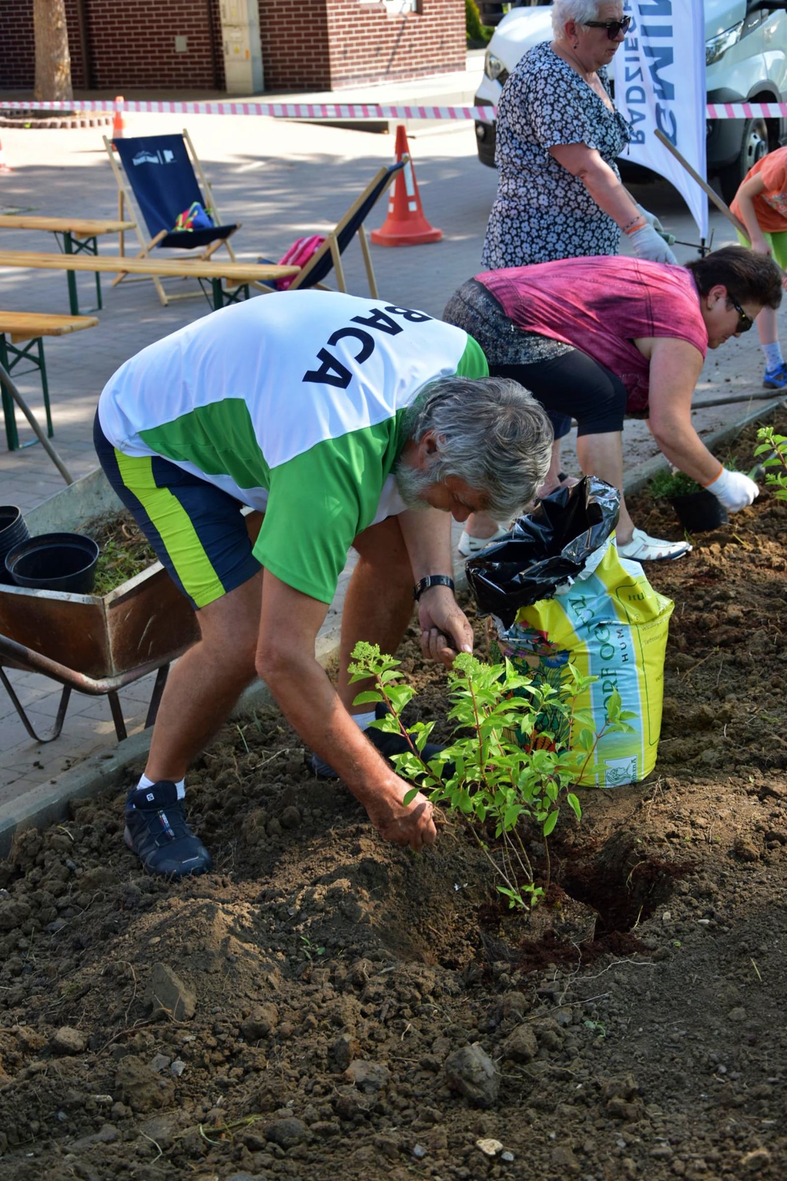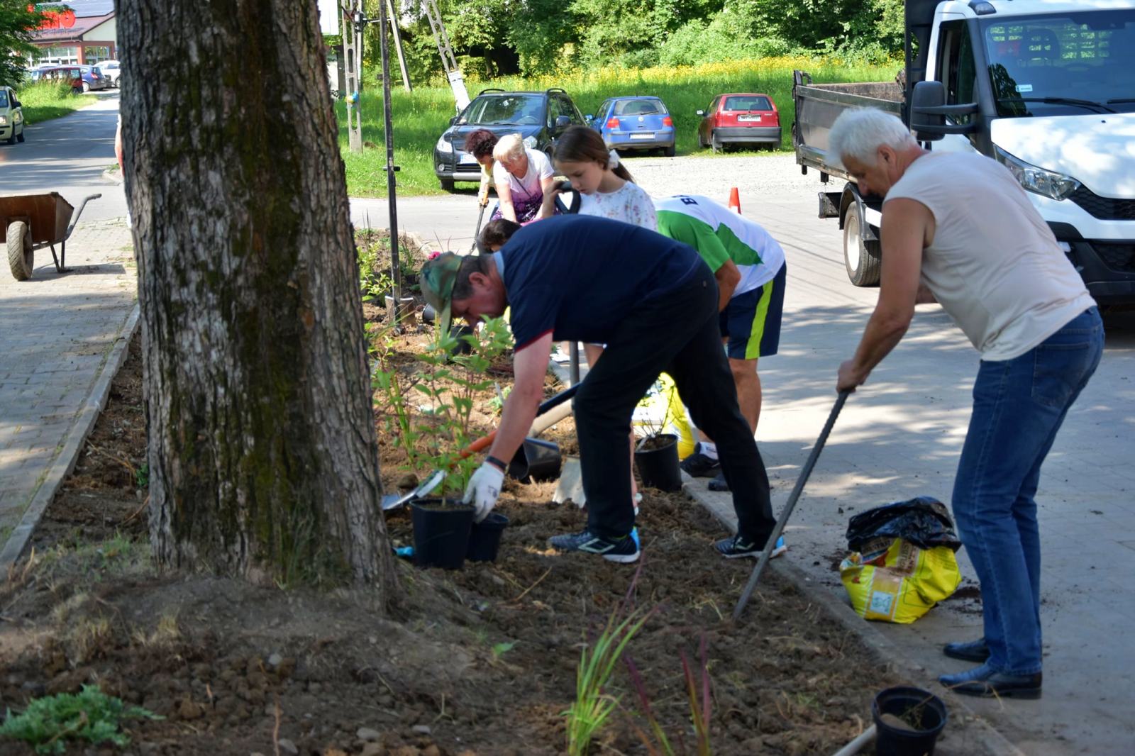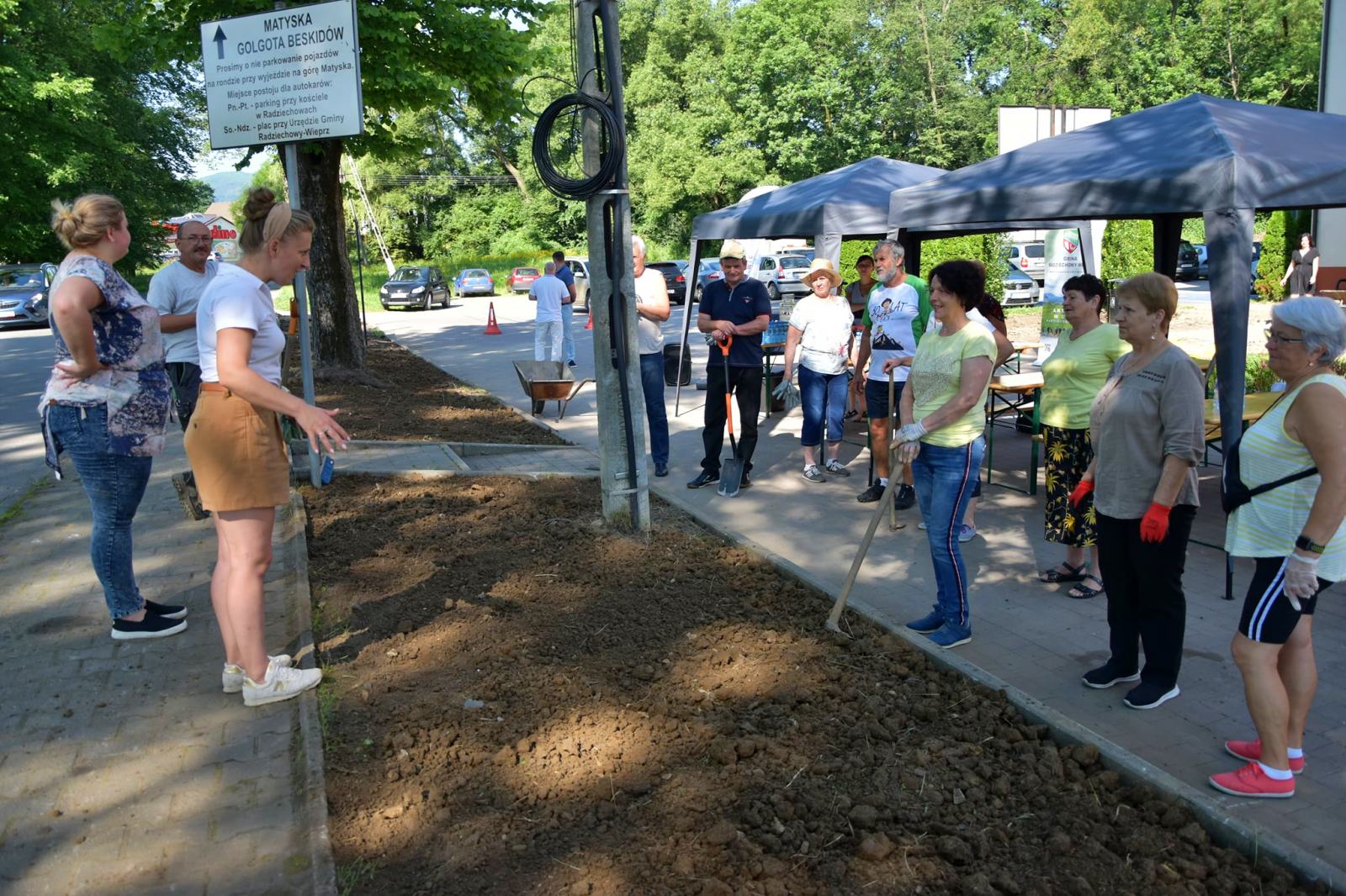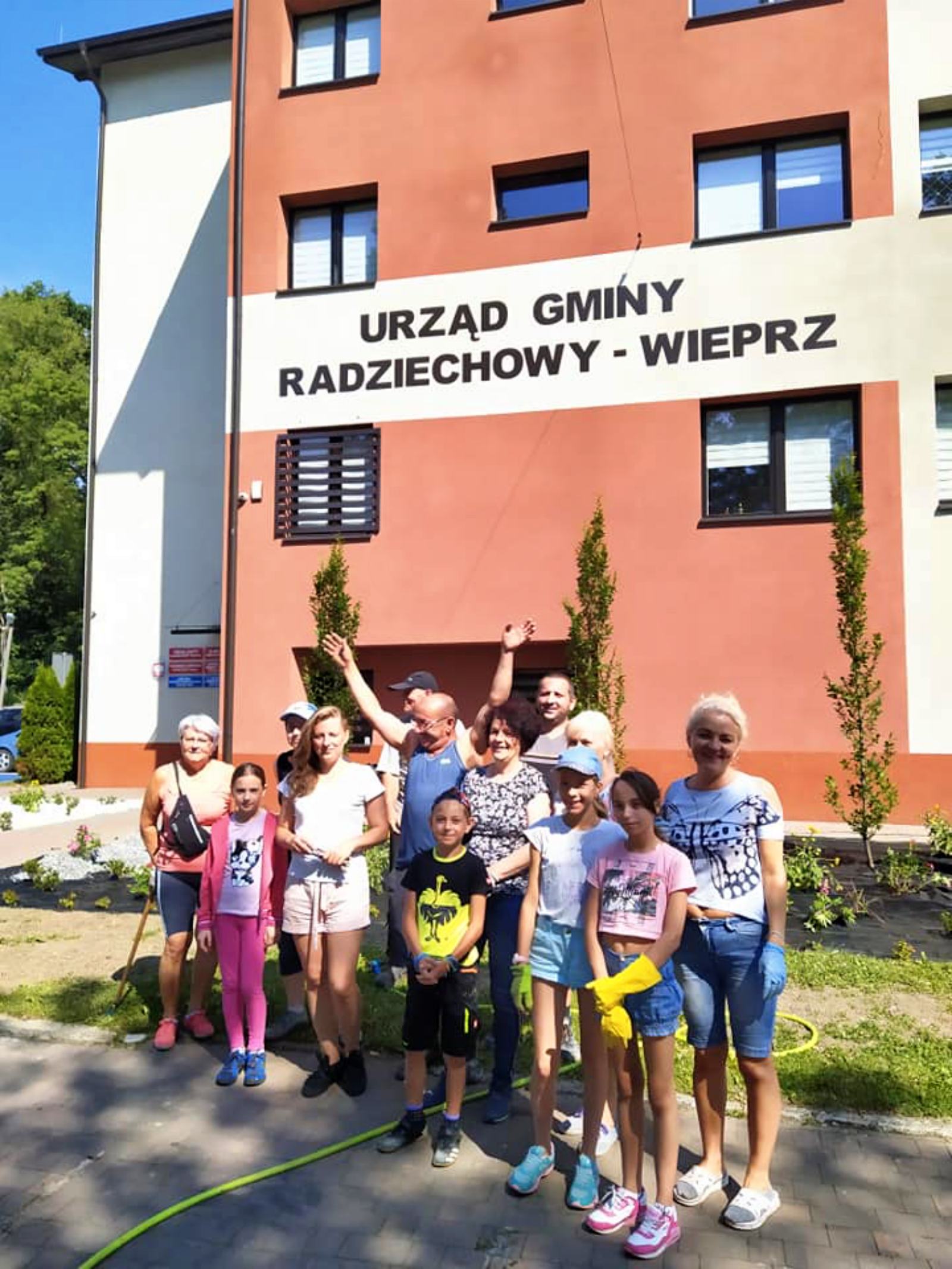 W akcji wspierali nas seniorzy z Klubu Seniora Gminy Radziechowy-Wieprz, artystka Ewelina Wiercigroch-Dudka, a nawet Ultramarotończyk Edward Dudek! Z pomocą przybyła także miejscowa młodzież i dzieci. Całą akcją sadzenia kierowała Pani Anna Olkis – inżynier krajobrazu. Akcję mocno wsparły Władze Gminy, przeznaczając własne środki na zakup ziemi, agrowłókniny, grysu oraz dodatkowych roślin – drzew.