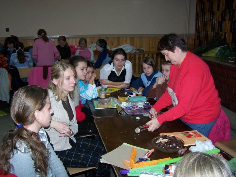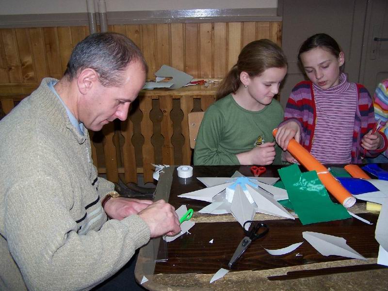 Warsztaty organizowane rokrocznie przez Starostwo Powiatowe w Żywcu odbywały się w ramach cyklu imprez pod hasłem “Zimowe Spotkania z Tradycją”. Współorganizatorem spotkania w naszej gminie był Gminny Ośrodek Kultury Radziechowy-Wieprz. Zajęcia z zakresu zwyczajów bożonarodzeniowych, budowy małej gwiazdy kolędniczej i wykonywania ozdób świątecznych prowadzili instruktorzy : Maria Grzegorek z Juszczyny – bibułkarka i gawędziarka, Jan Gąsiorek z Żywca – folklorysta oraz Mirosław Dziergas z Wieprza – Dyrektor Wydziału Turystyki, Kultury, Sportu i Promocji Powiatu Starostwa Powiatowego w Żywcu.