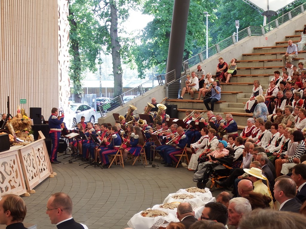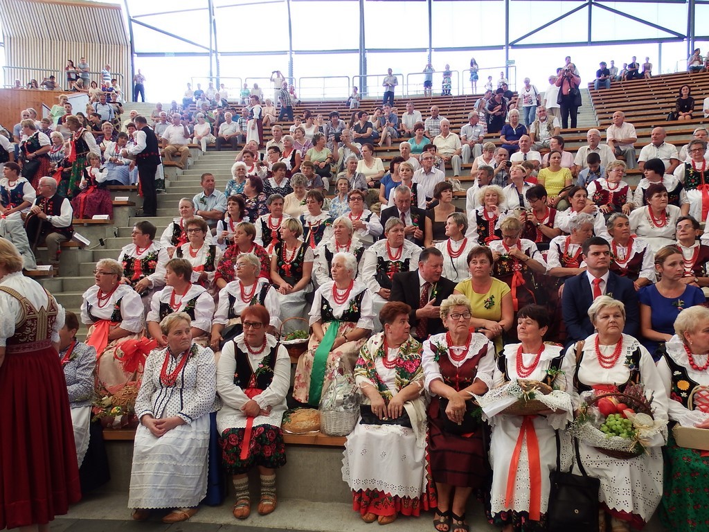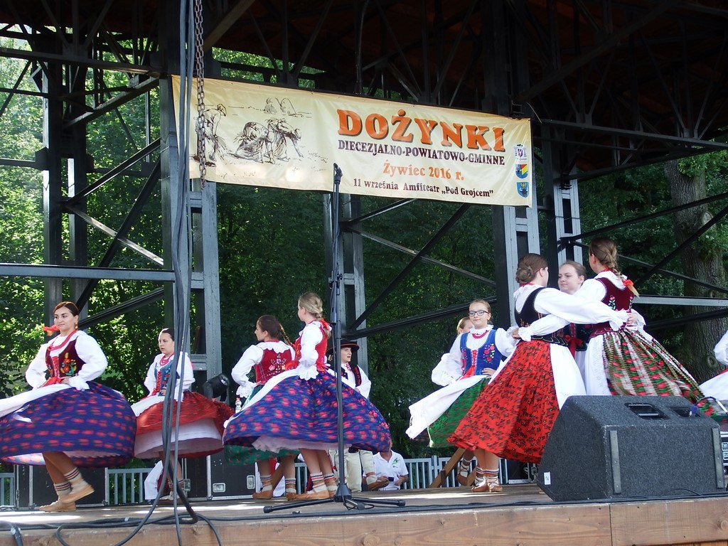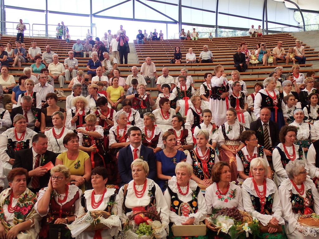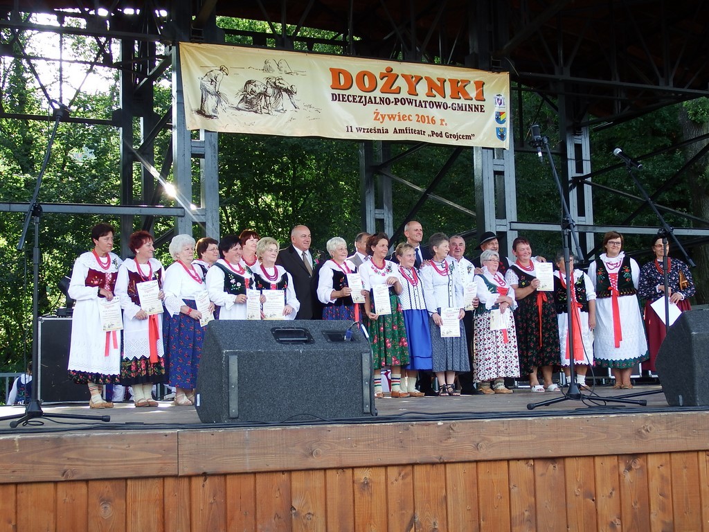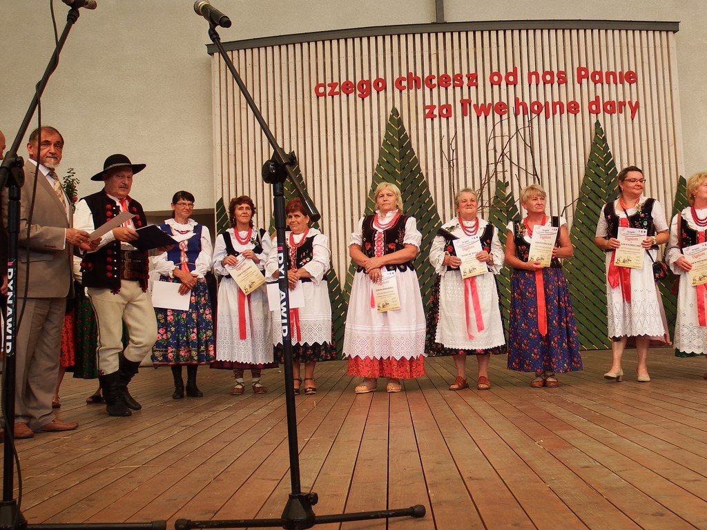 Na dożynkach reprezentowała naszą Gminę mocna grupa Pań z Kół Gospodyń Wiejskich oraz Zespół Regionalny GROJCOWIANIE, którego kapela uświetniła swoją muzyką korowód, a zespół wystąpił na scenie tuż przez gwiazdą wieczoru (a był nią zespół Baciary).