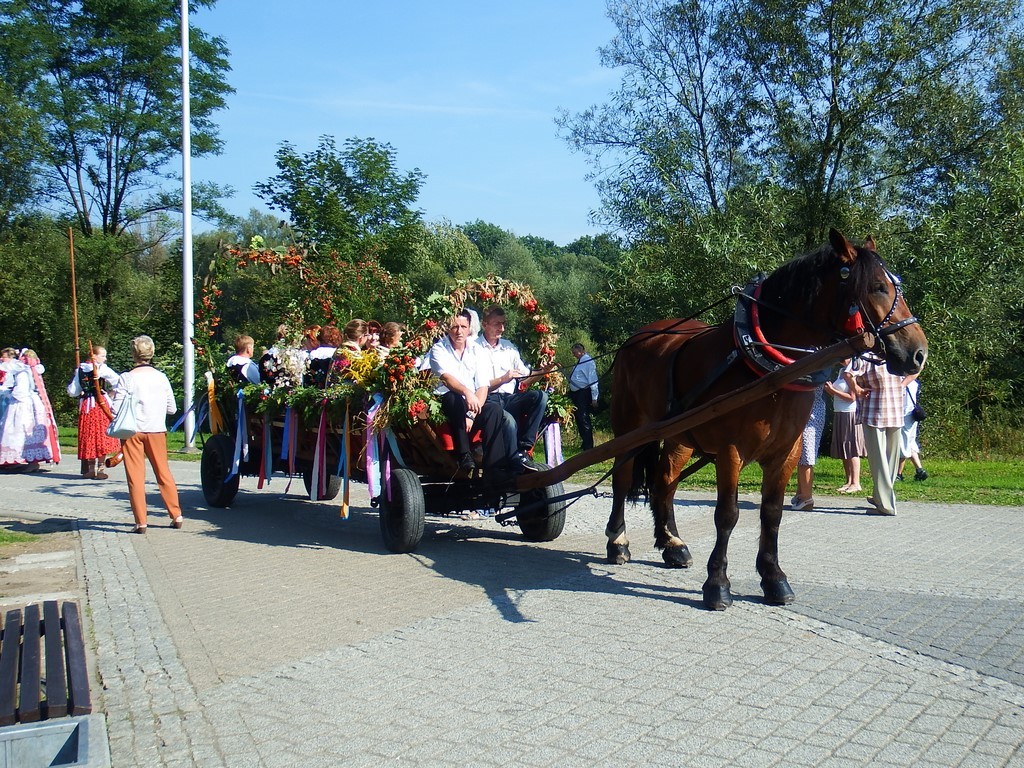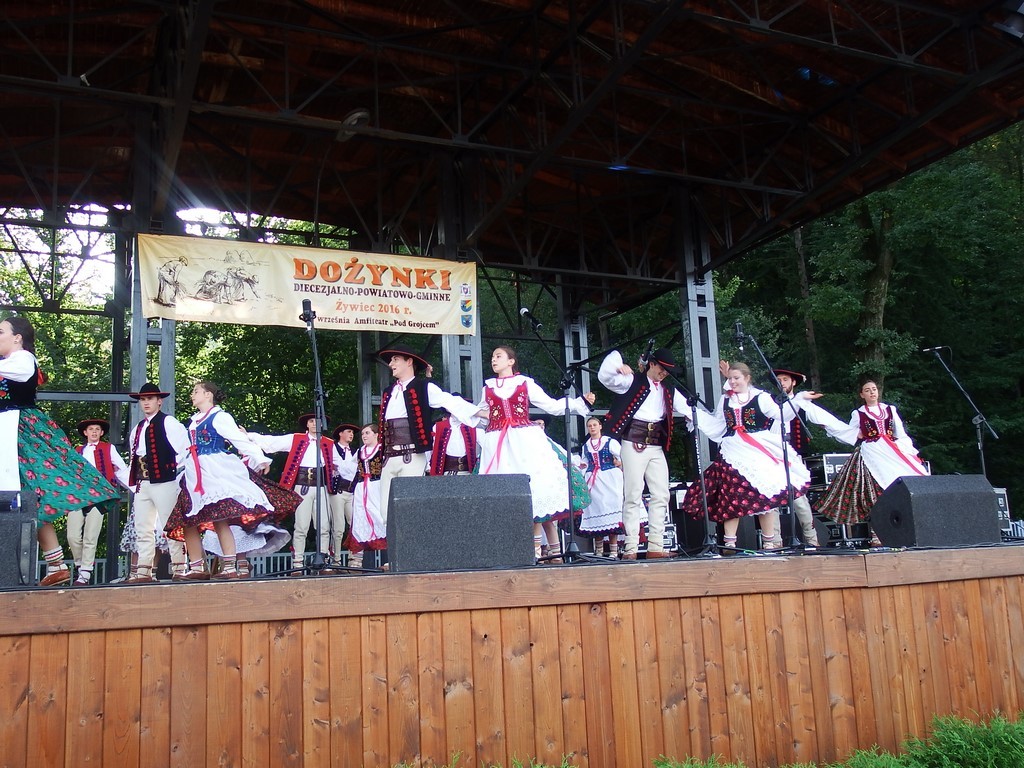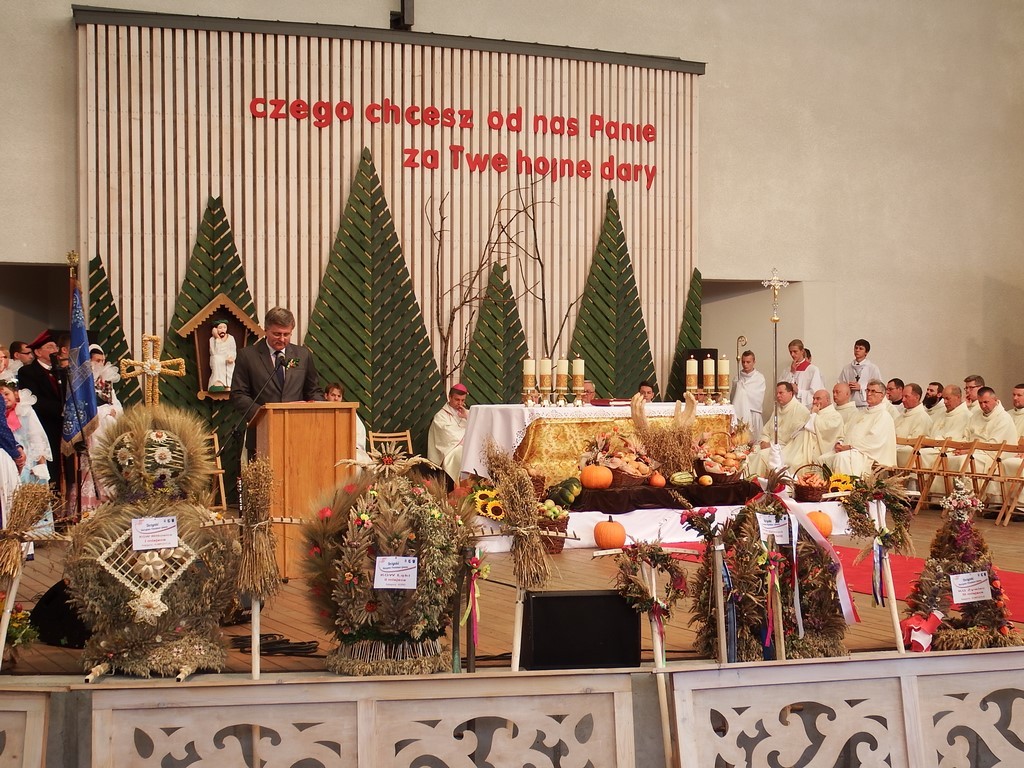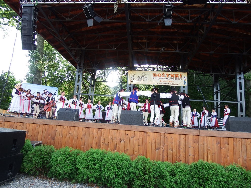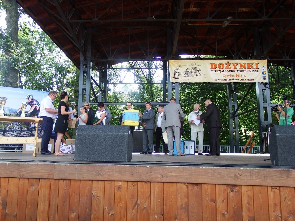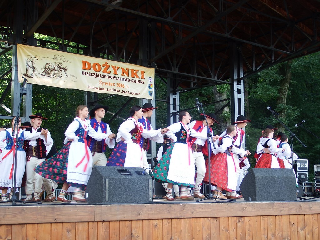 Na dożynkach reprezentowała naszą Gminę mocna grupa Pań z Kół Gospodyń Wiejskich oraz Zespół Regionalny GROJCOWIANIE, którego kapela uświetniła swoją muzyką korowód, a zespół wystąpił na scenie tuż przez gwiazdą wieczoru (a był nią zespół Baciary).