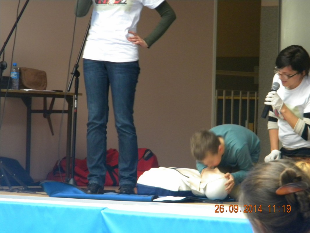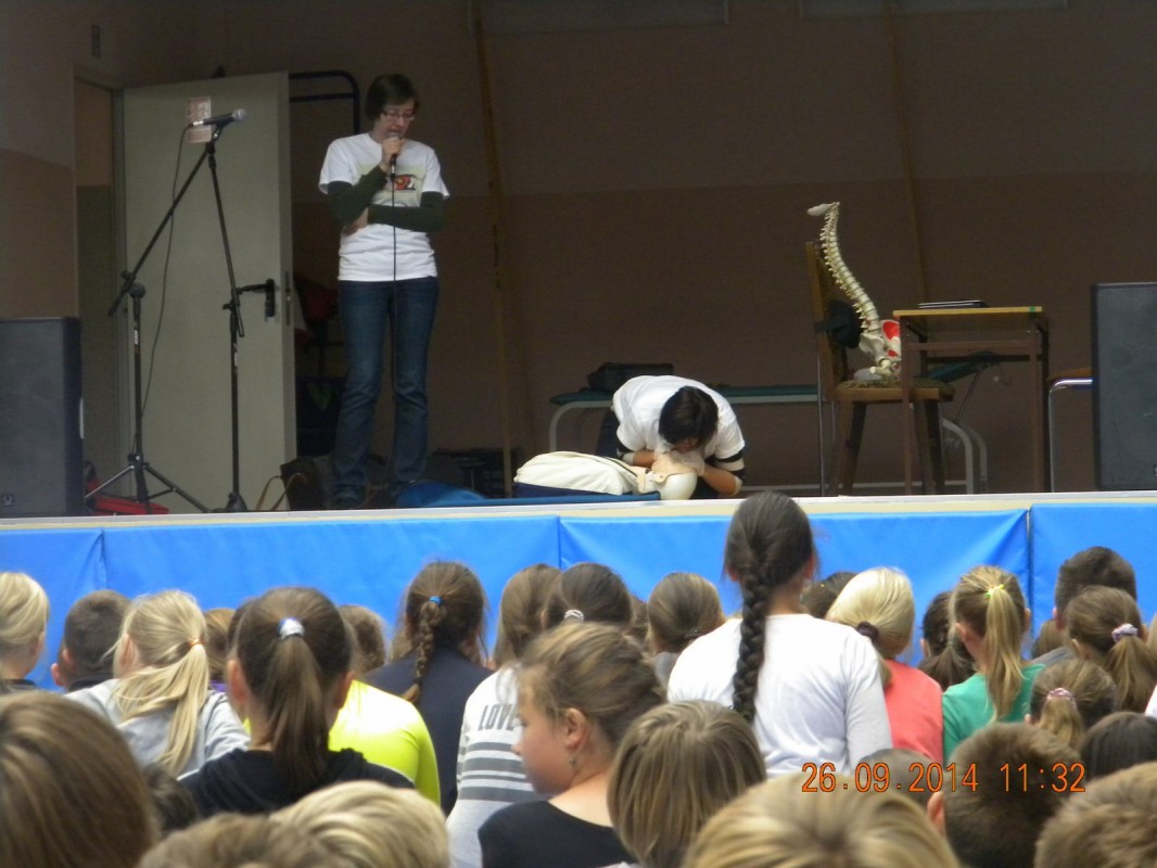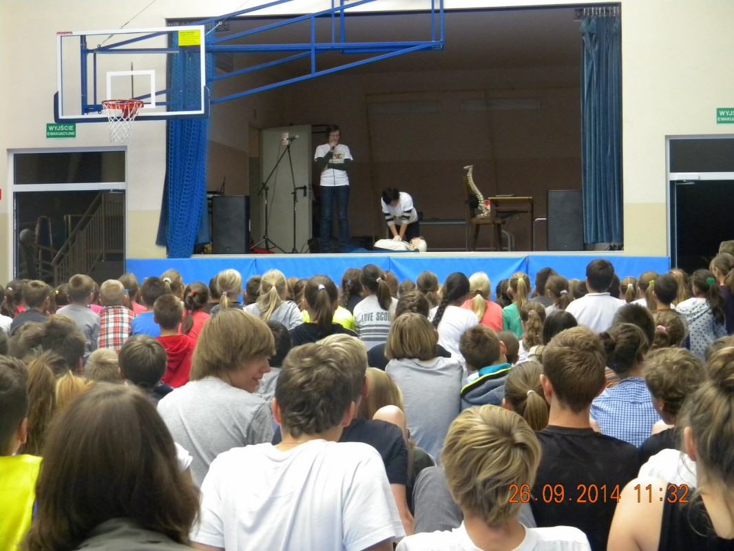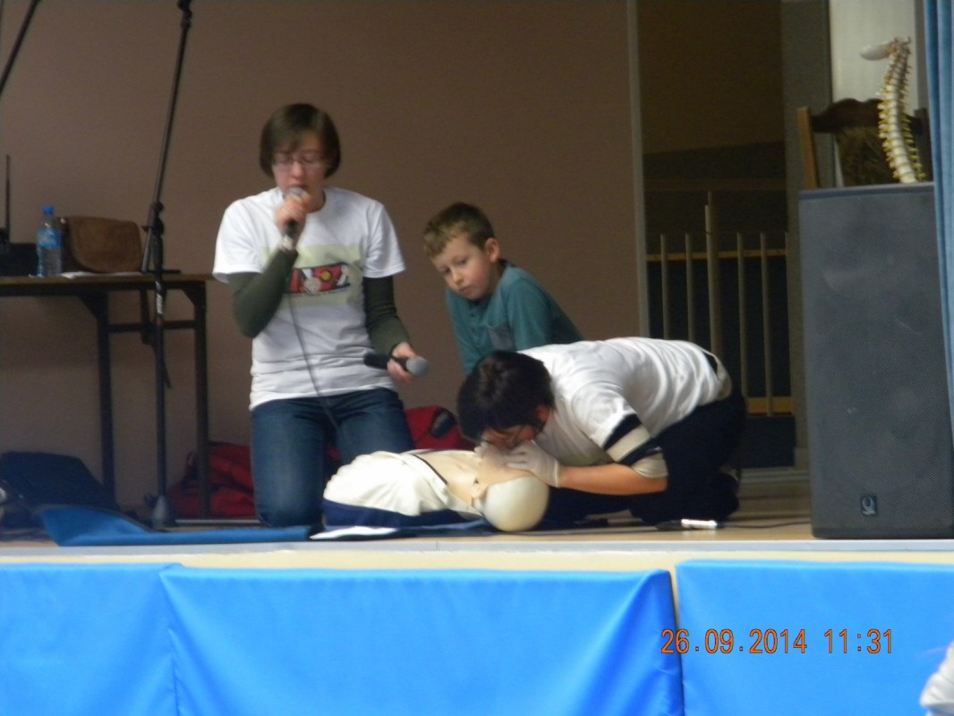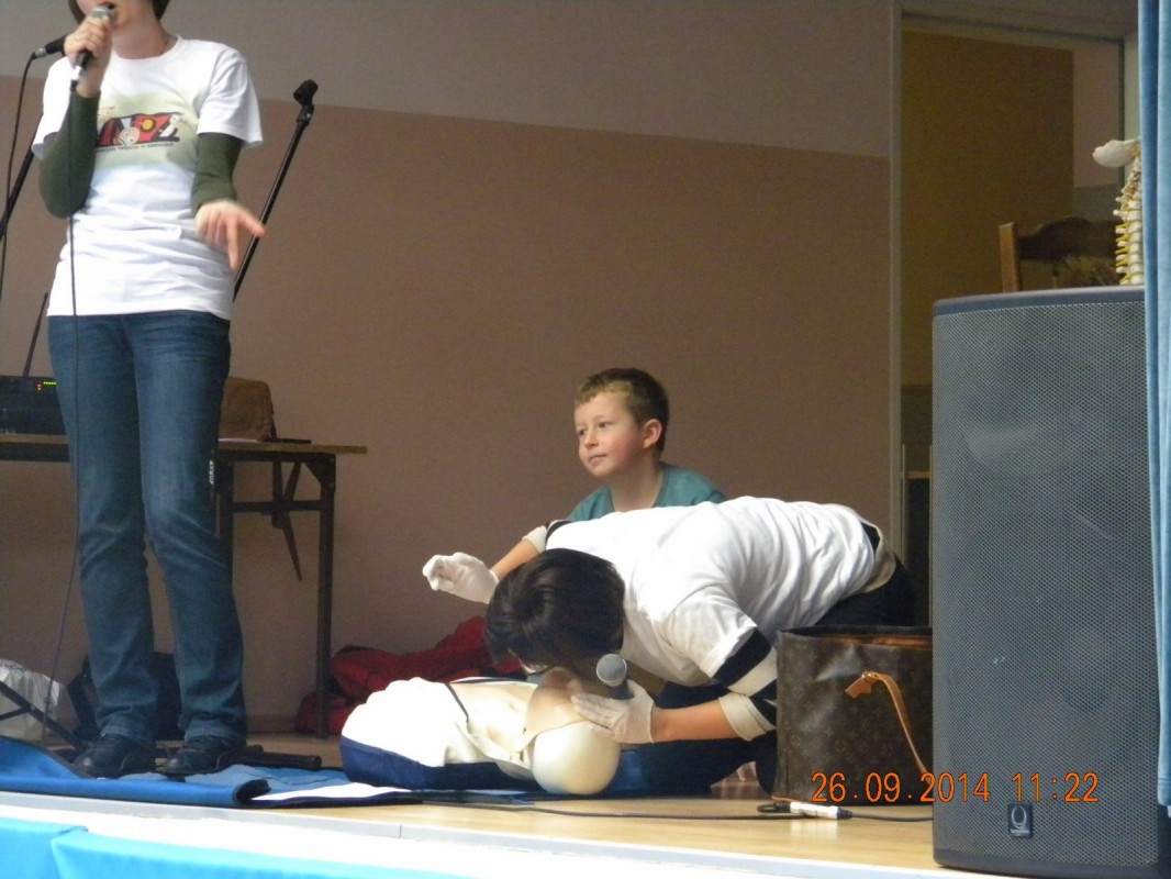 Pokaz pierwszej pomocy oraz zajęcia na temat ergonomii pracy ucznia